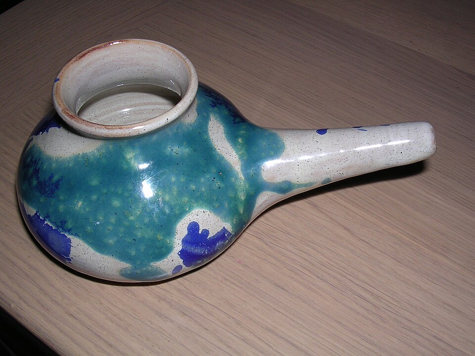 Neti pot used for saline nasal irrigation to reduce symptoms