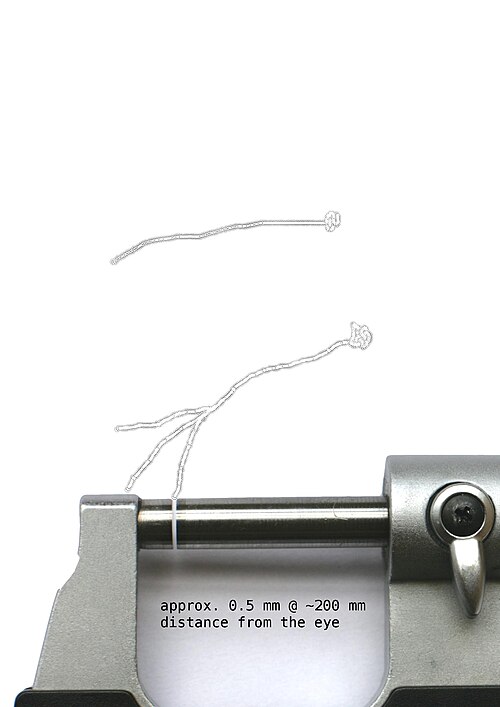 “Simulated eye floaters (mouches volantes) shown against a micrometer slit for 0.5 mm scale reference.”